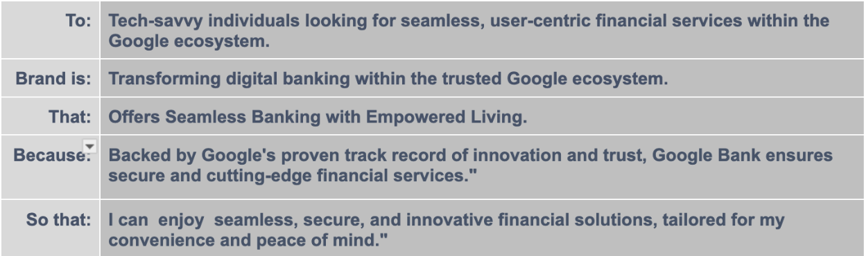 An example of the positioning statement for Google Banks.