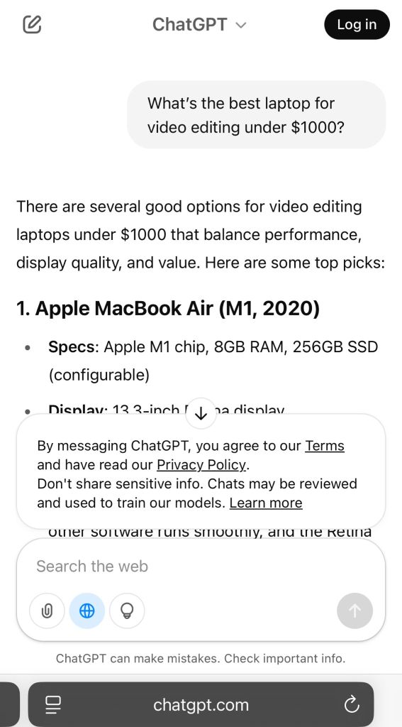 You’d type: “Best laptops for video editing under $1,000”