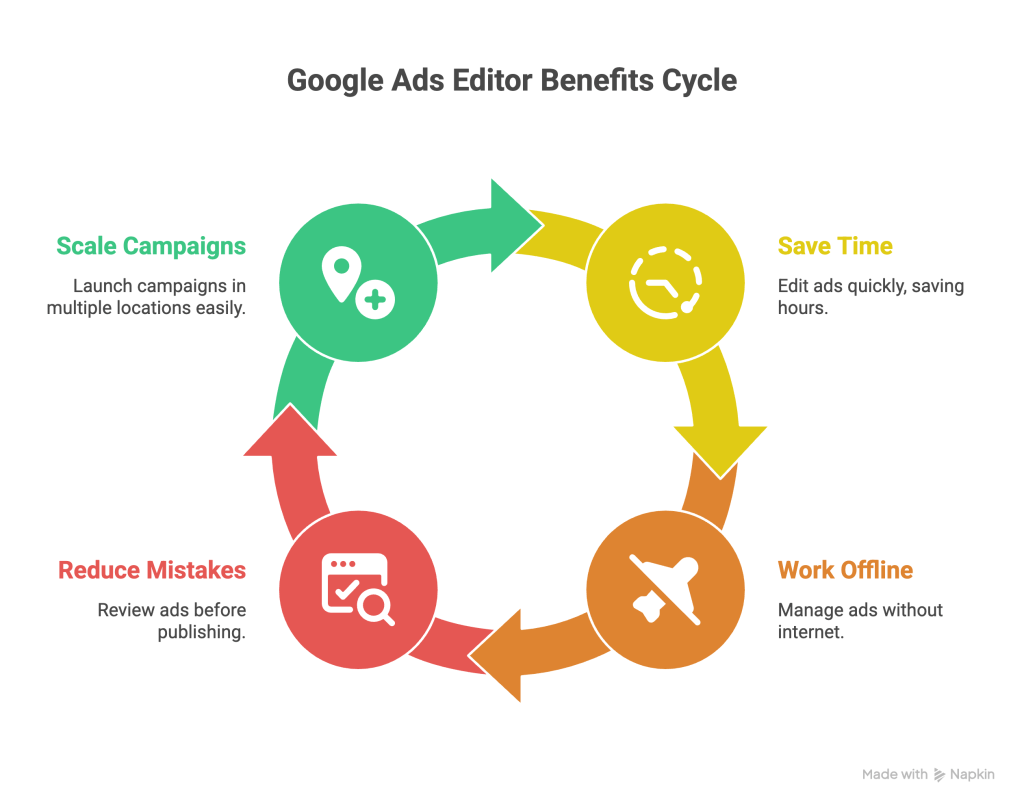 Doing all of that directly inside the Google Ads website would take forever. That’s why agencies rely on Google Ads Editor to get the job done efficiently.